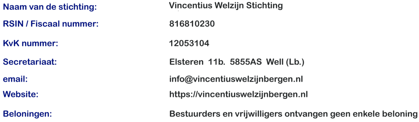 De nieuwe naam is vanaf dan: Vincentius Welzijn Stichting gemeente Bergen (Lb.) verkort: VWS